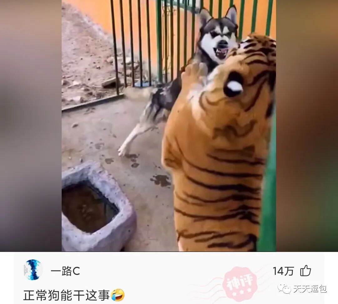 谁说二哈就只会吵架的,关键时刻能和猛虎掰腕子!