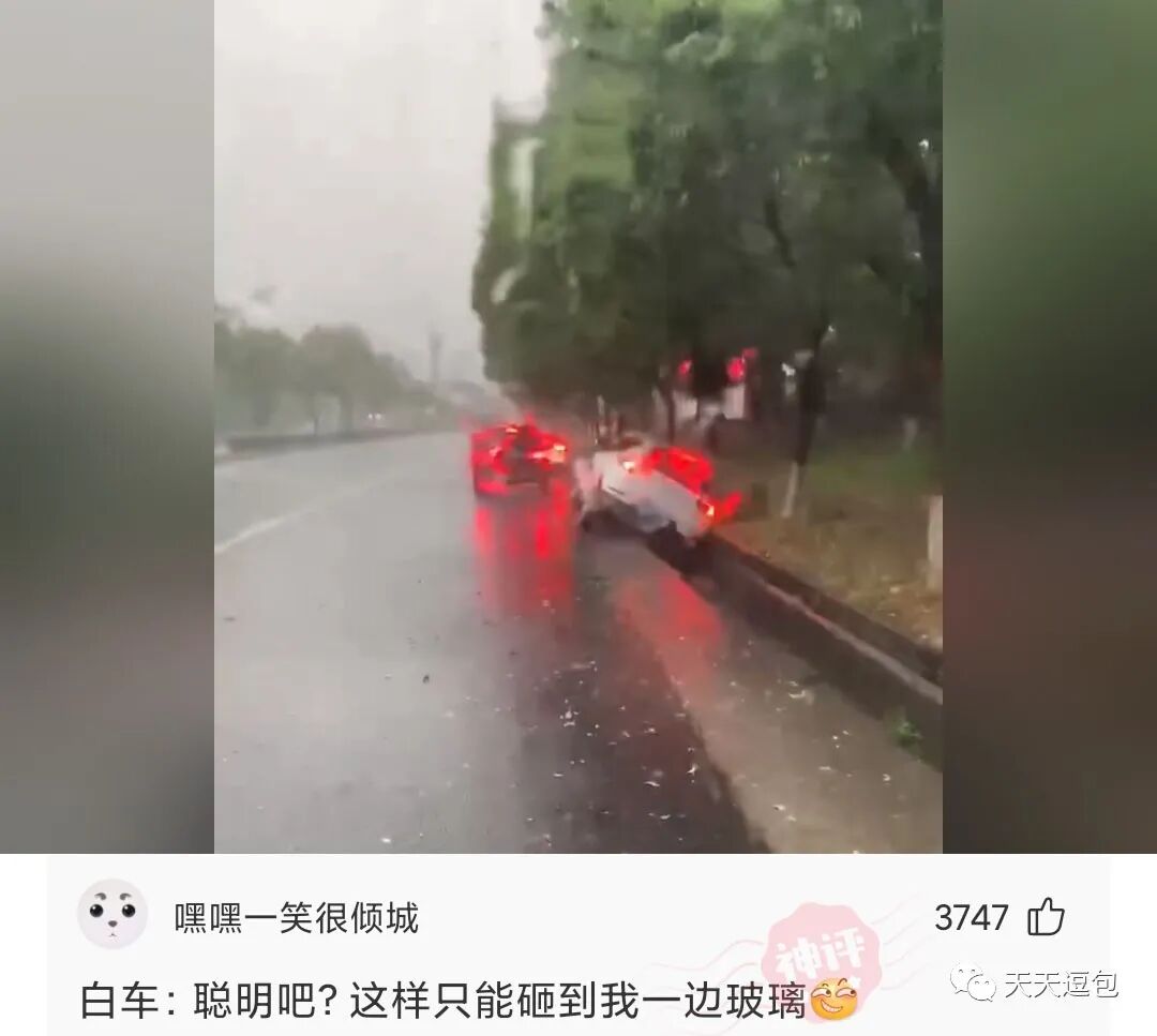 今天下冰雹了,这哥们竟然为了躲冰雹掉进排水沟了!