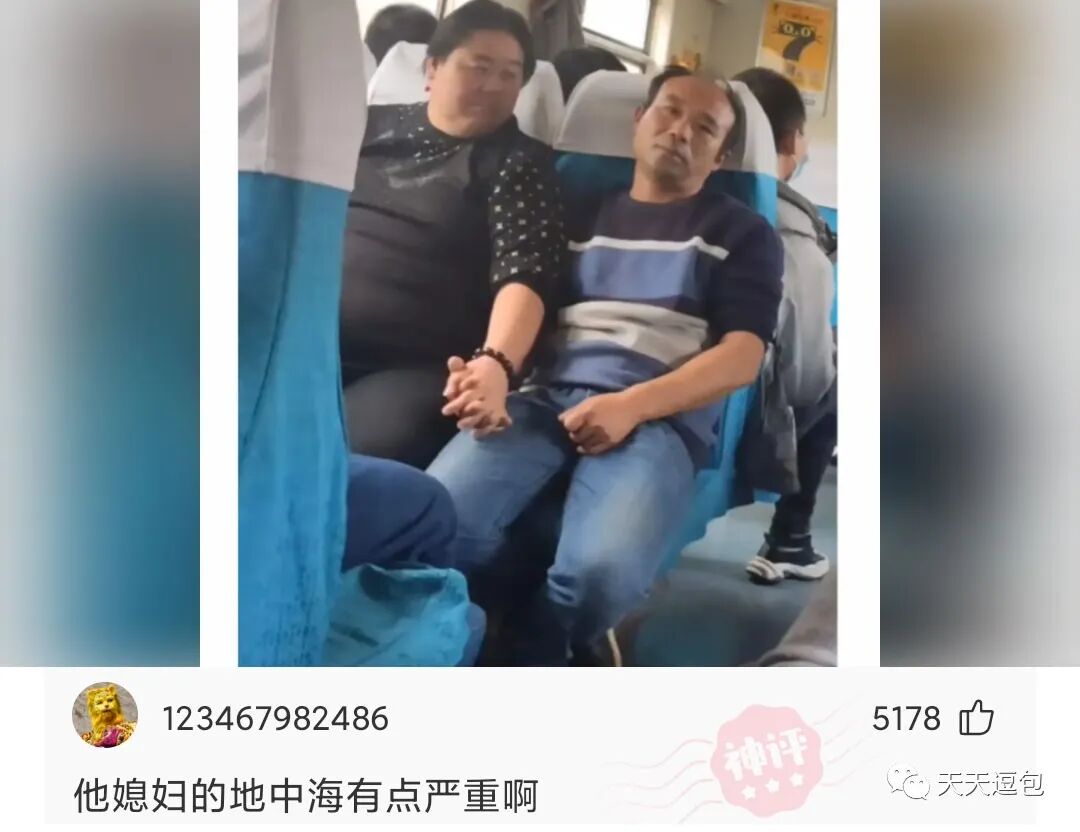 大叔坐了十几个站,也舍不得放开媳妇的手,这或许就是爱情吧!