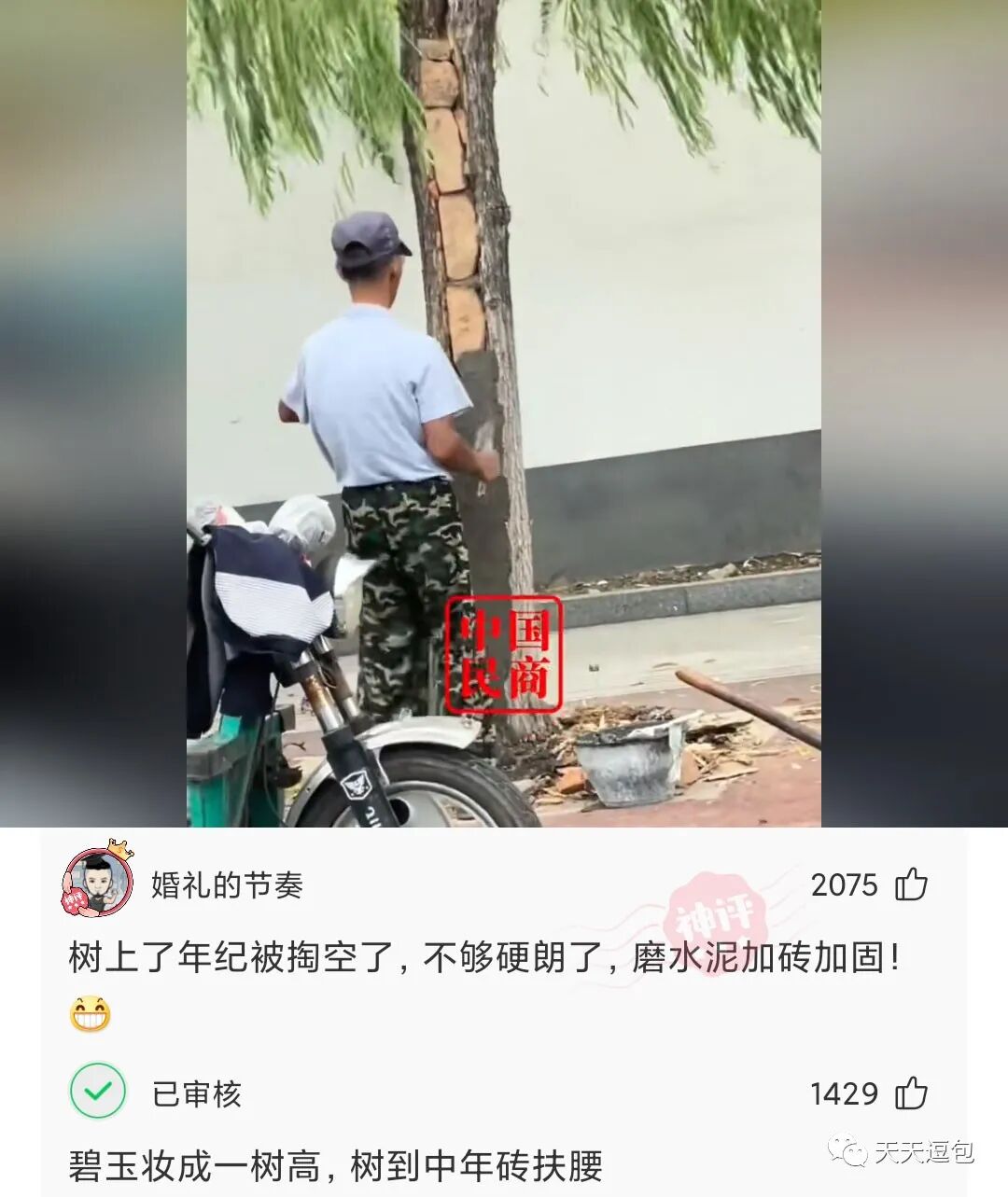 在树身上砌砖,不知是何用意?拔苗助长吗?