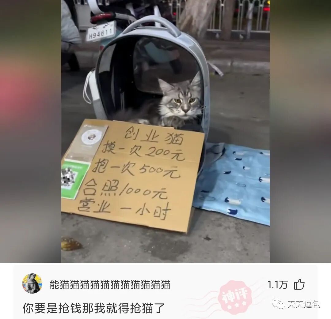 这年头猫咪也需要认真工作了。主人带猫咪创业从地摊,猫升级为创业猫,摸一次200块!