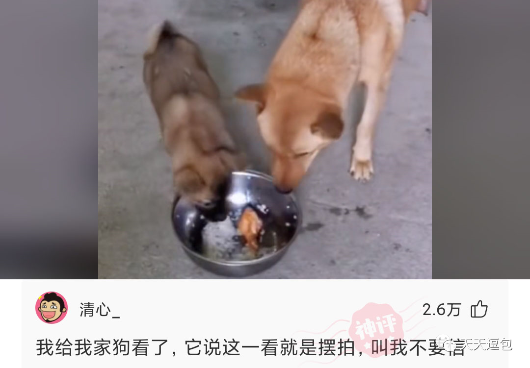 主人想让狗妈妈补补身体,在其饭钵里埋了一只鸡腿,狗妈妈发现后直接把鸡腿给小狗!