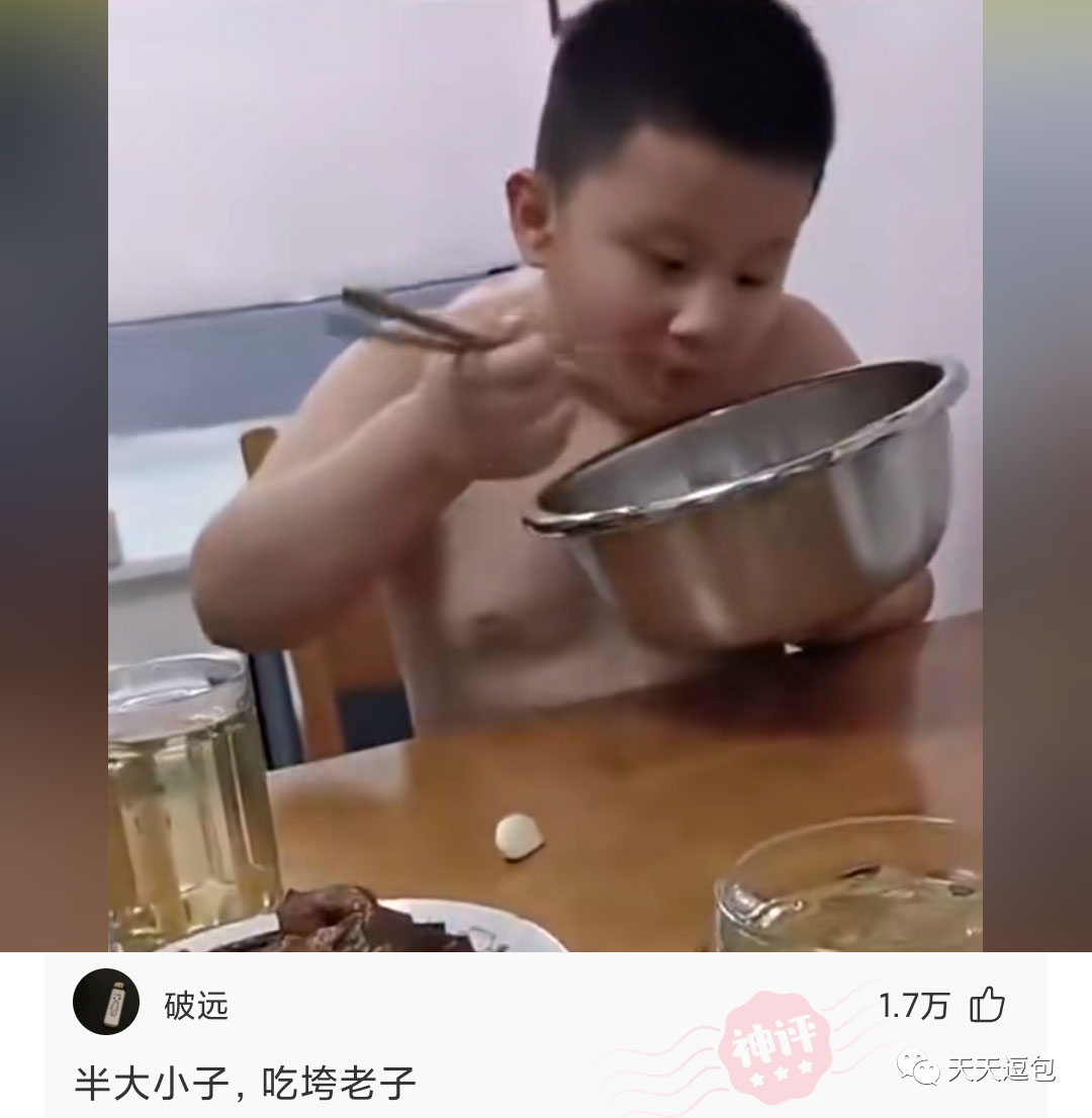 绝对是亲生的,看盆就知道,这小子是炫饭高手!