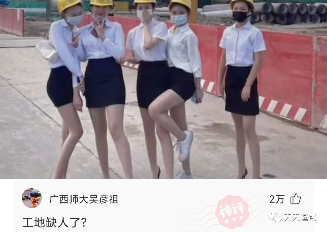 来到工地别后悔,这里还有大长腿,努力搬砖,才不会败北!