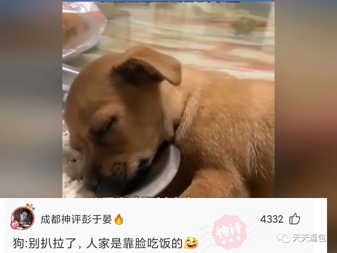 小狗吃饭时犯困,栽进饭盆怎么都叫不醒!像不像你们小时候的样子?
