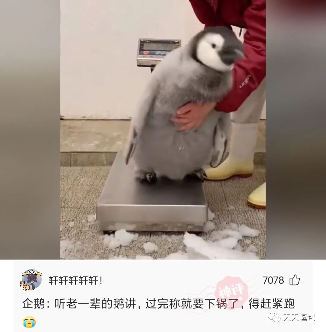 饲养员在为帝企鹅宝宝称重,宝宝却施展极限拉扯,没想到最后。。。