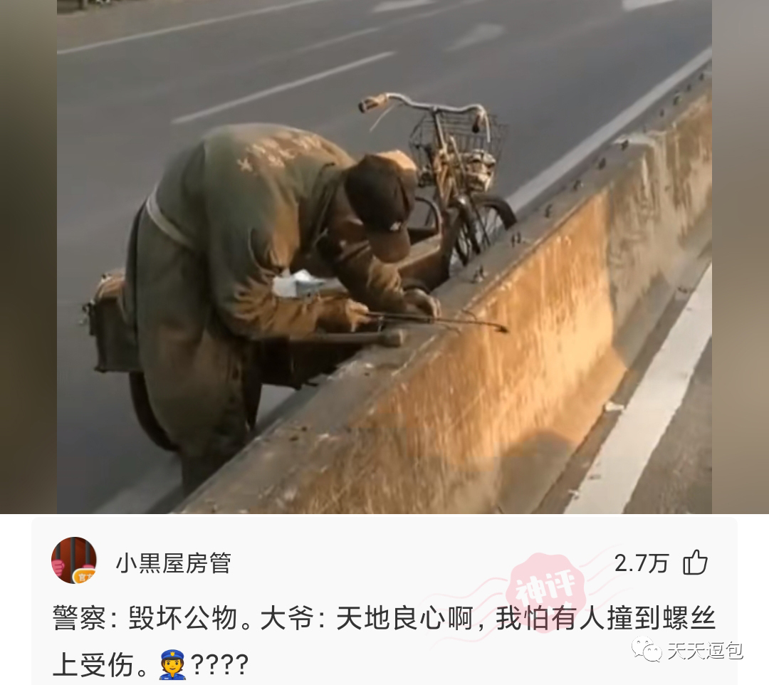 收废品的最高境界,隔离墩上凸出的螺丝,被大爷一根根锯掉!