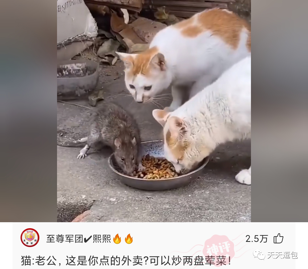 老鼠:麻烦两位让一让,给我腾点空间,大家一起吃啊!