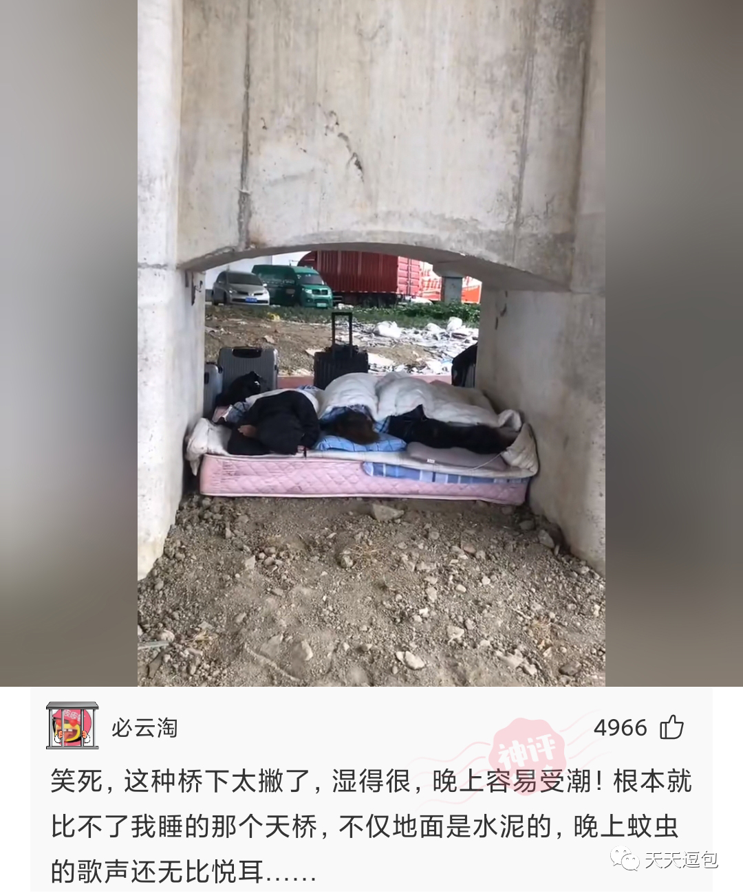 妈的,今天来迟了一步,今天桥洞被别人占了!