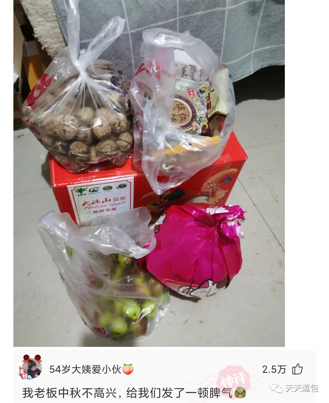 朋友所在单位中秋发福利,一箱苹果,一袋核桃,一袋枣,一个红柚,8个月饼,还有1200过节费。不知道这样的福利是什么水平?