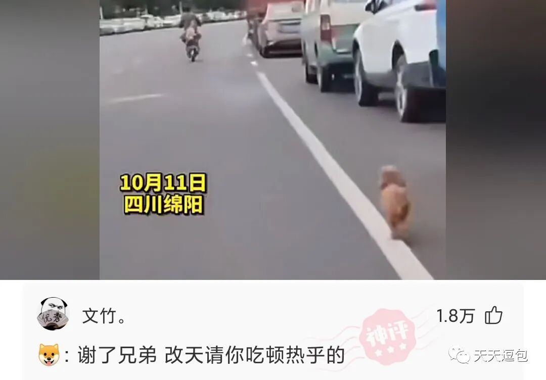 狗子被主人落下,热心骑车男子喊它上车:兄弟上车,我带你追!