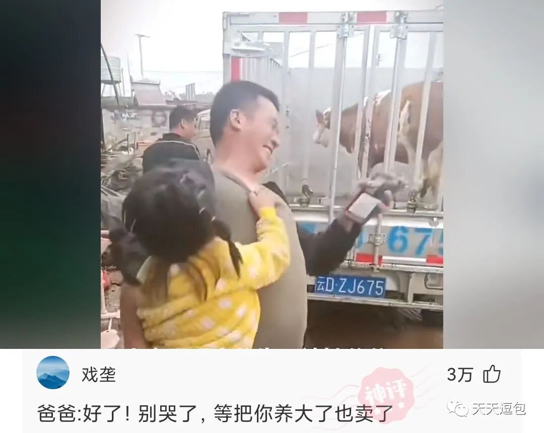 小宝贝喂大的牛,被她爸爸卖了,哭了一早上了,这该怎么哄?