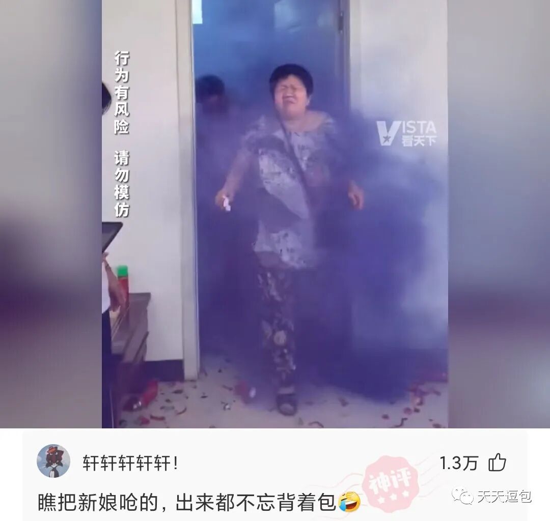 新娘房里人太多进不去,伴郎扔两个烟雾弹全部熏出来了,朋友:新郎之前闹过人家!