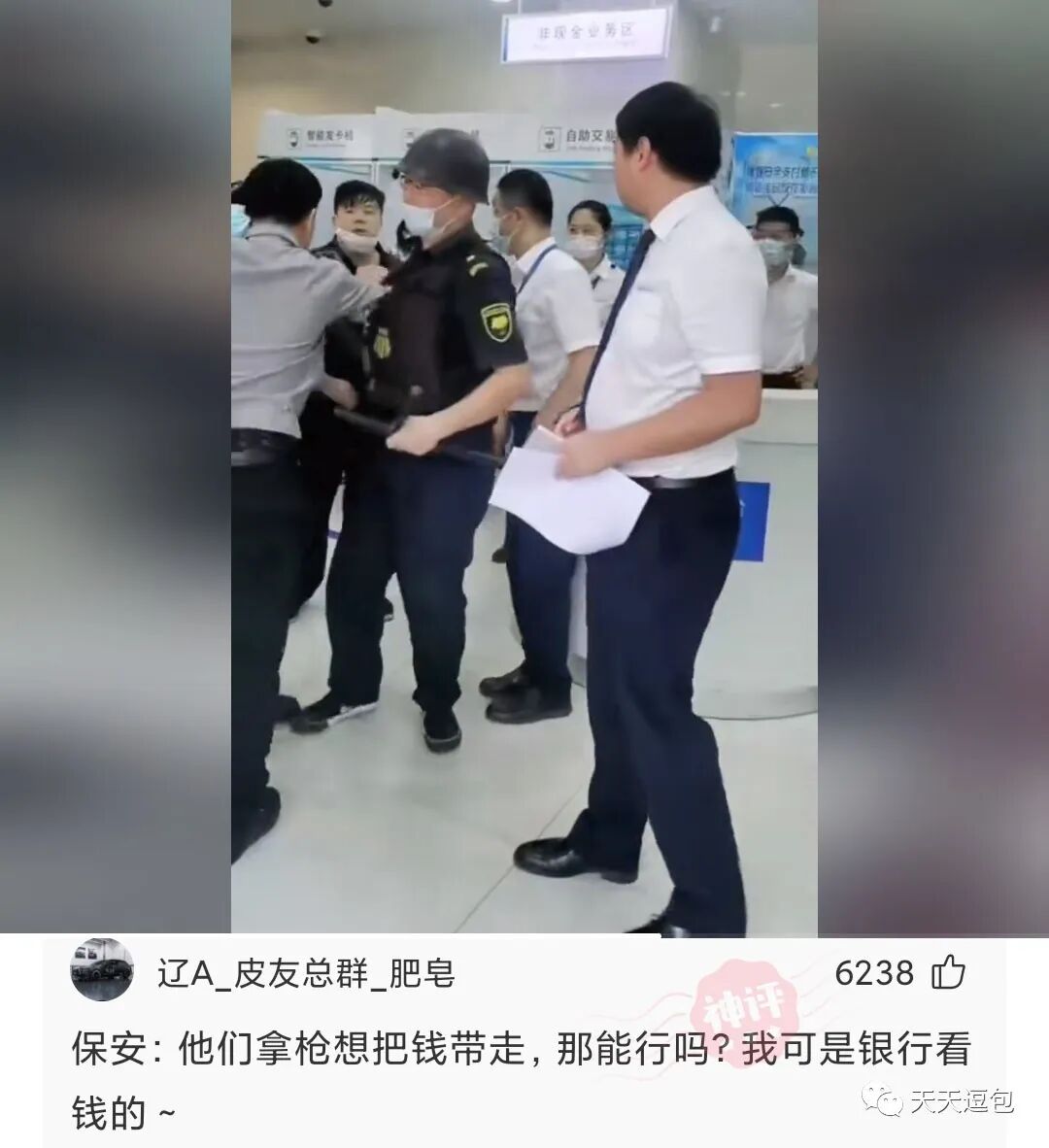 杭州某银行,运钞车护卫与保安发生冲突,具体原因尚不明确!