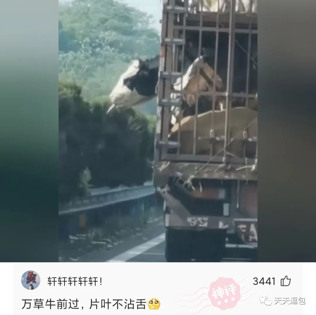 牛牛高速吃绿化带,真是吃了个寂寞,真想摘给它吃!