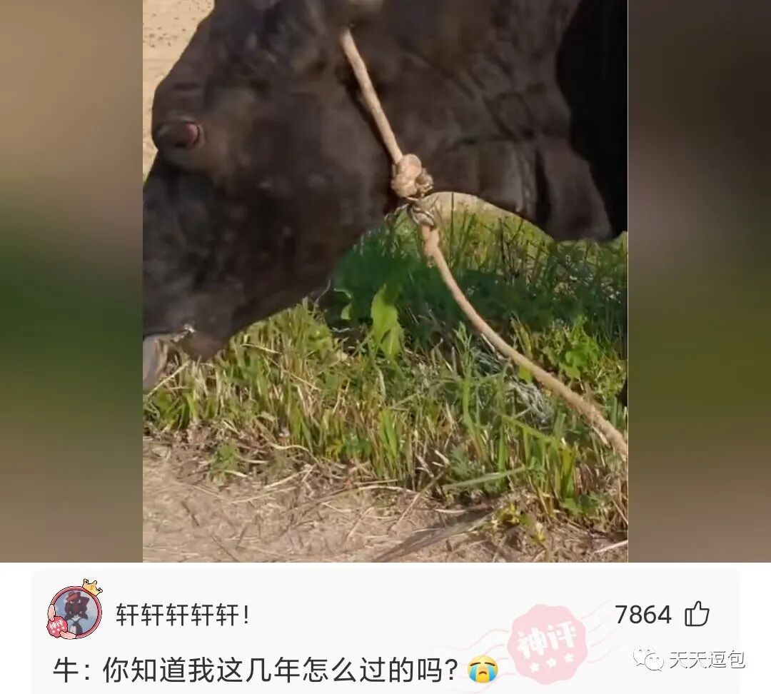 圈养了六年的牛,第一次出圈吃草,看它吃草我竟然饿了,第一次吃到这种美味可带劲了。