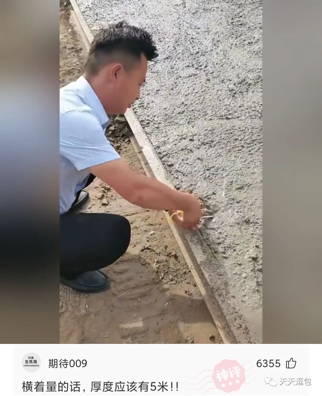 谁说我们水泥地厚度不达标的,看好了,我亲自来测量一下!