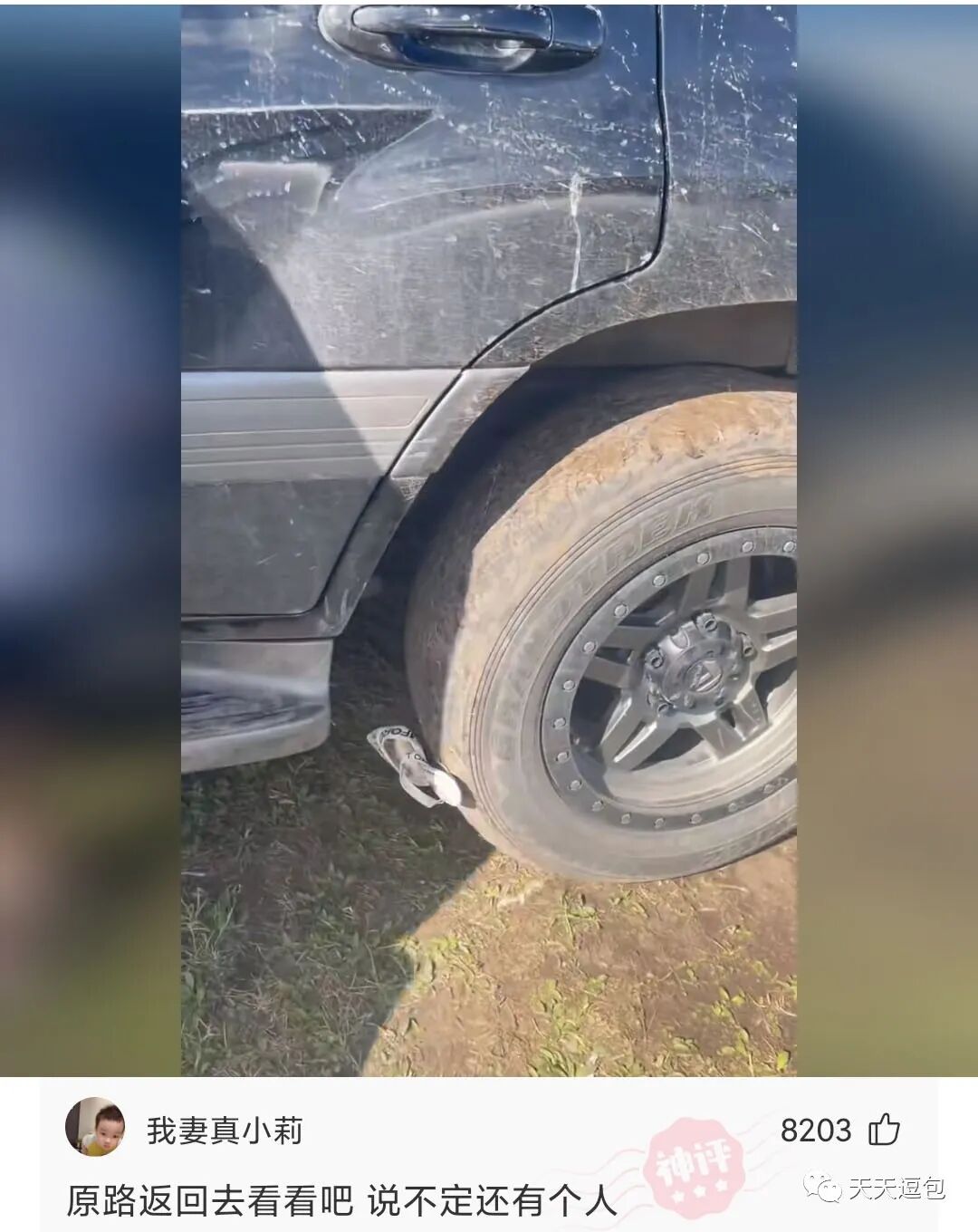 高跟鞋扎住汽车轮胎,轮胎也没想到有生之年还能穿上高跟鞋!