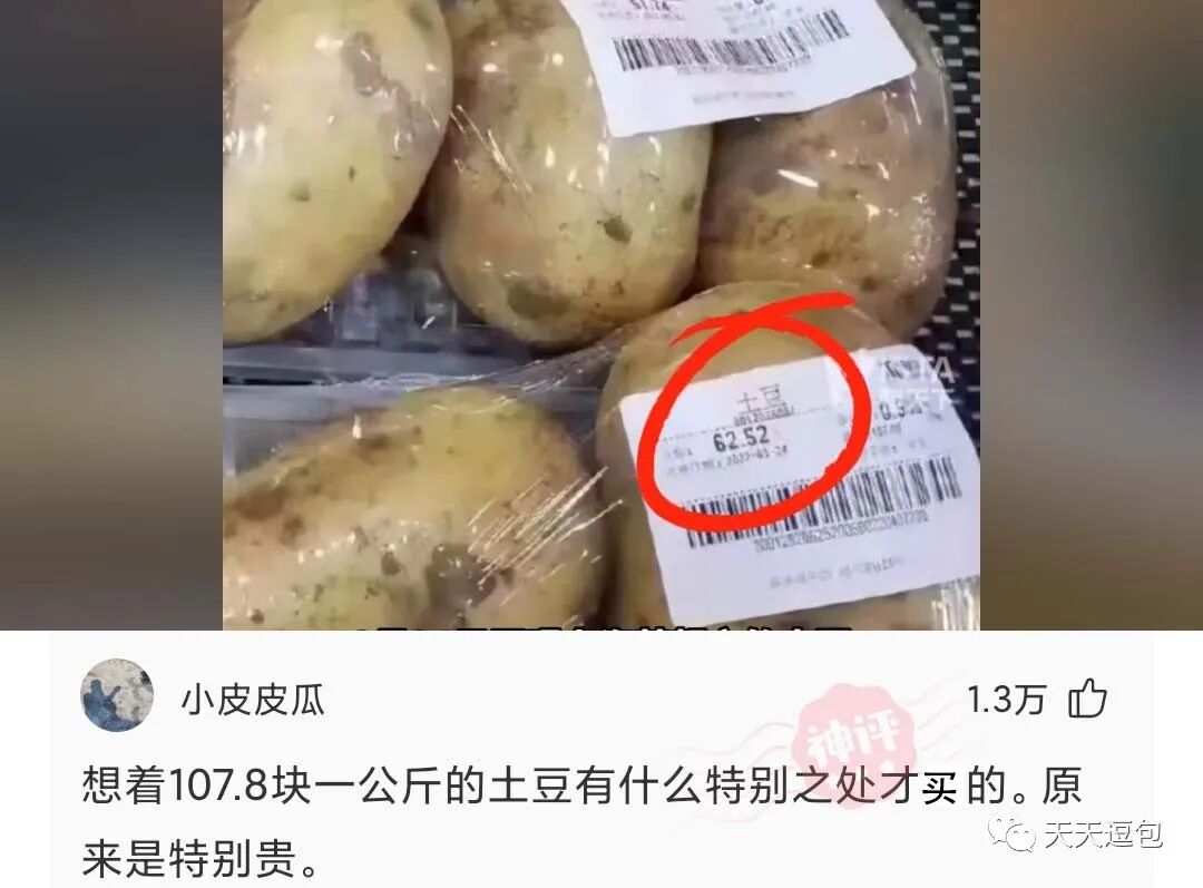 真土豪!上海一超市土豆卖107.8元/公斤。超市:单价打错了,卖出去了一盒,正在寻找消费者!