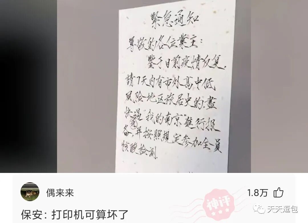 小区物业的打印机坏了,保安手写瘦金体,发布紧急通知!