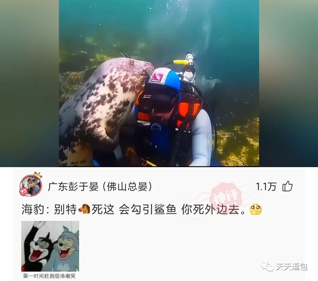 海豹误以为男子溺水,上前帮忙,男子无奈只能浮出水面,画面太暖了!