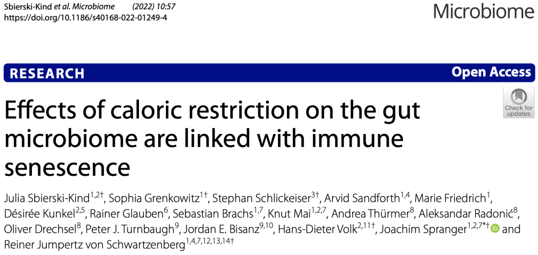 1.Sbierski-Kind J, Grenkowitz S, Schlickeiser S, et al. Effects of caloric restriction on the gut microbiome are linked with immune senescence. Microbiome. 2022;10(1):57.