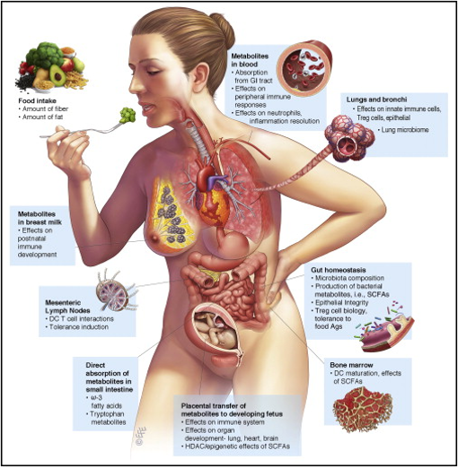 饮食或细菌代谢物与免疫系统相互作用的要点概览[16]