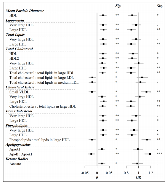 在该研究中,研究人员找到了24种与鸡蛋摄入量相关的代谢物,有14个与心血管疾病风险相关。其中,鸡蛋摄入与高密度脂蛋白的浓度呈现正相关。这些高密度脂蛋白水平的提高,有助于清除血管中的胆固醇,改善胆固醇代谢特性,从而对心血管有保护作用。相反,低密度脂蛋白胆固醇酯与鸡蛋摄入呈负相关。