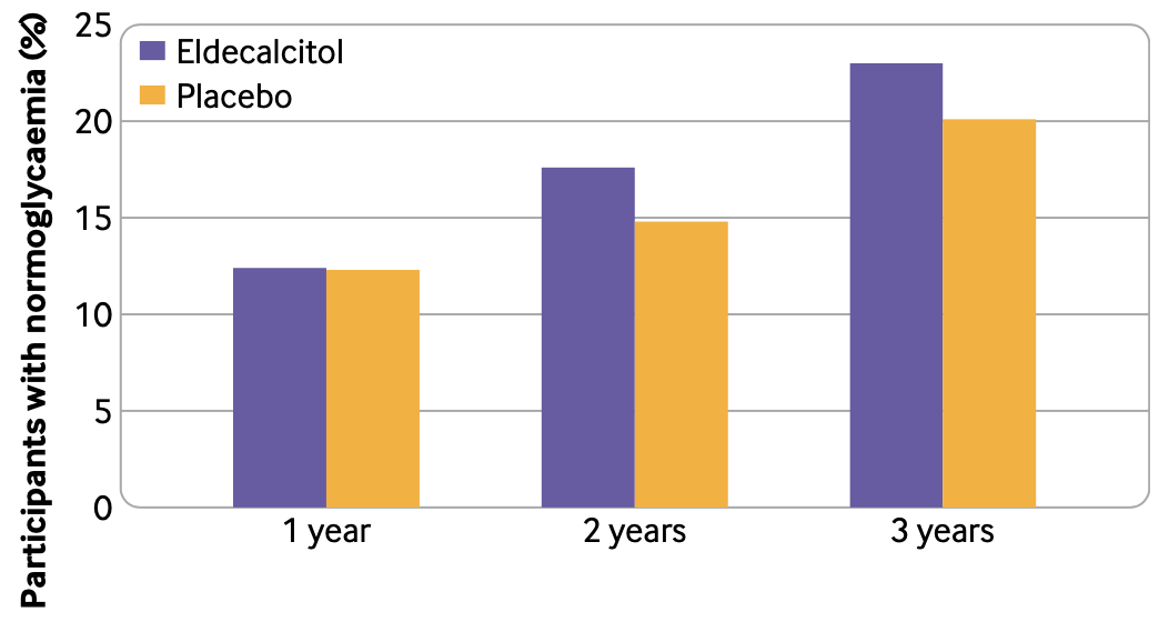 eldecalcitol组与安慰剂组参与者血糖恢复正常的概率没有明显差异