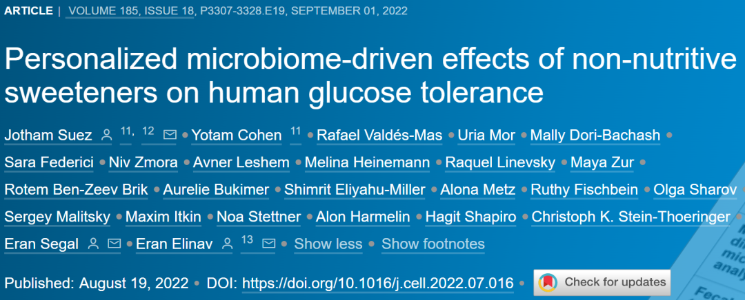 [4]Suez J, Cohen Y, Valdés-Mas R, et al. Personalized microbiome-driven effects of non-nutritive sweeteners on human glucose tolerance [published online ahead of print, 2022 Aug 17]. Cell. 2022;S0092-8674(22)00919-9. doi:10.1016/j.cell.2022.07.016