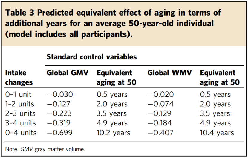 因此,研究人员对饮酒和衰老导致的大脑体积缩小进行了比较。