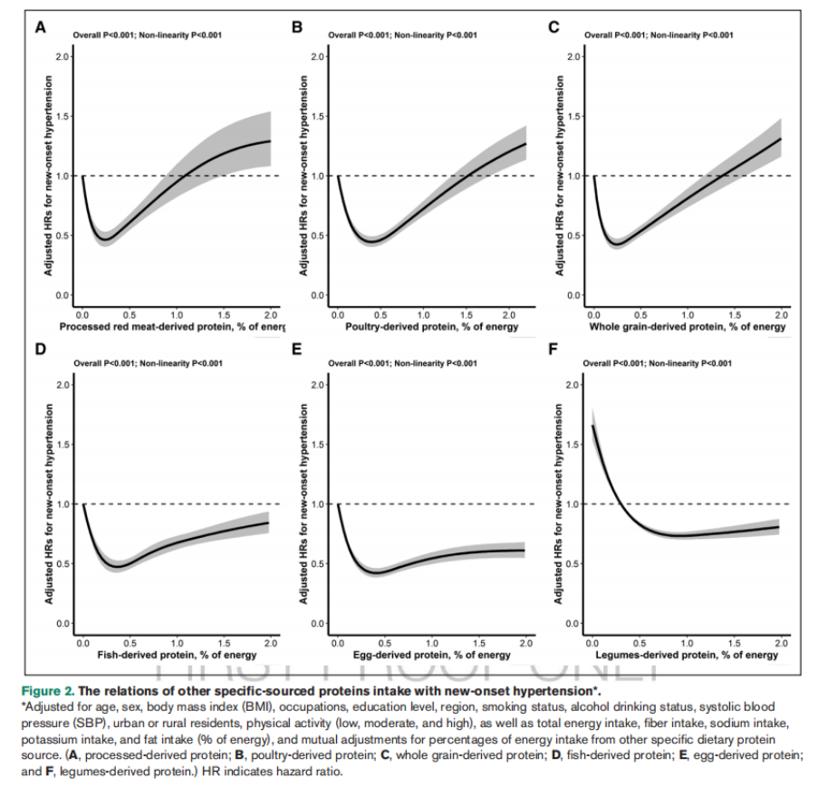 事实上,据报道,蛋白质摄入的异质性非常大,来自不同食物的蛋白质可能会对血压产生不同的影响。但以前的研究大多只关注总蛋白、总动物蛋白和总植物蛋白的摄入,并没有对蛋白质来源进行更详细的划分。