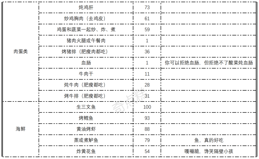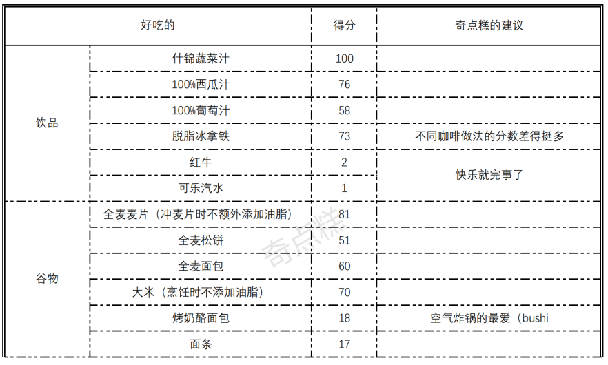此时,奇点糕心中已经有了“去后排坐单桌”的人选。那我们来一起看看,各类食品在这场考试中得分都如何。