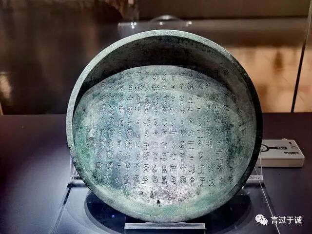 这件铜器顶有圈形把手,倒放就像一个盘子,难怪张秀琳认为它是碗。铜器外饰横条脊纹,内铸十五行一百五十二字铭文,这些铭文篆刻工整秀丽,典雅规范,一看就出自大家之手。