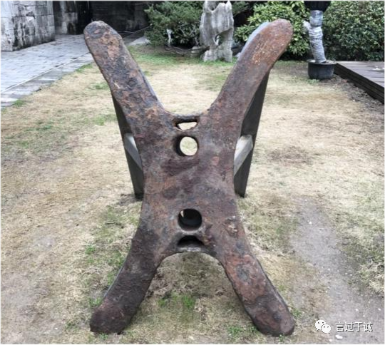 在今人看来,飞来剪是起重器械。前文提到,铁剪上有两个直径10厘米左右的圆形孔洞,再结合飞来剪大都出现在河边或寺庙中,由此不难推测,飞来剪应该是船上的起重器械,或是建筑高楼的稳定器,它的2个孔洞,就是用来固定绳索的。并非无的放矢,南京大报恩寺核心建筑高78.2米,在没有钢筋水泥的古代,必然要借助一些构件来稳定地基和柱子,以免发生倾覆。