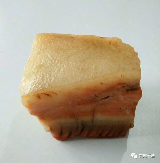 可奇怪的是,这块石头的“肉质”有肥有瘦,表面油光闪闪,甚至还有一层肉皮,猛然一看,谁都会误认为是五花肉。