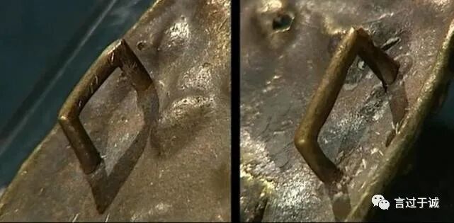翻到金牌背面,我们可以看到上面有两个矩形横扣,看起来和现代的腰带扣头极为相似,基于此,再结合此前出土的匈奴金牌,专家认为,这块金牌极有可能是匈奴人装饰于腰带、衣服、手套或头饰等物品上的一种扣饰,与腰带扣头功能相仿。