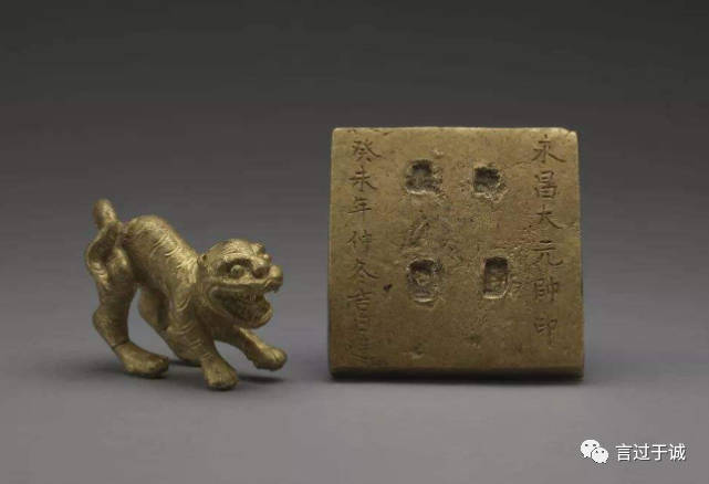 当李某和郑某再次将宝贝挖出来后,两人惊讶地发现,金块正面有“大元帅印”几个字。更让两人惊喜的是,金块上还有四个孔洞,正好可以把金老虎的四足嵌进去,形成一枚完整的金印!