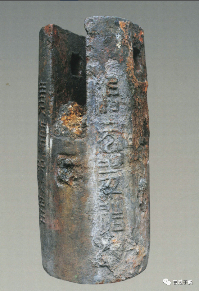 不多时,派出所工作人员带着文管专家来到现场。经过初步研究,专家发现铁柱子上确实有不少篆书铭文,其中“广汉郡雒江桥墩”几个字清晰可辨,说明这是一件桥墩子。遗憾的是,铸刻“年号”那一栏,字迹已经模糊了。不过,桥墩上的篆书足以证明,这件桥墩的年代应该是在秦汉时期。