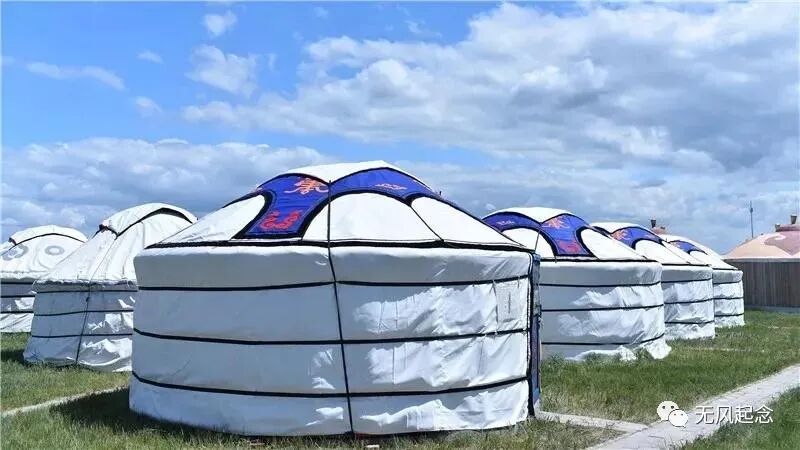 蒙古包,呈圆形,有大也有小,但其基本构造都是一样的,由网状编壁哈那、条木楞子乌尼、圆形天窗和门等构成,外面蒙上毡子,再用鬃毛绳子勒紧即可。