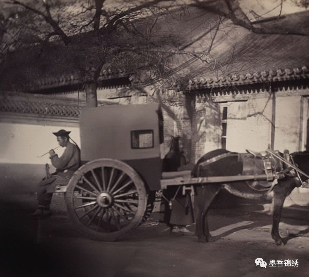 晚清时期的北京城内的马车夫憨笑旧照,古时候的有钱人皆喜欢乘坐马车出行,而非行驶缓慢的人力轿子。虽然人力抬轿更有面子与排场,但是其轿子所耗费的成本太高,通常每一顶轿子需养八个轿夫以供换班,若是高居一品大臣之职位,普通的达官贵人都很难养得起。