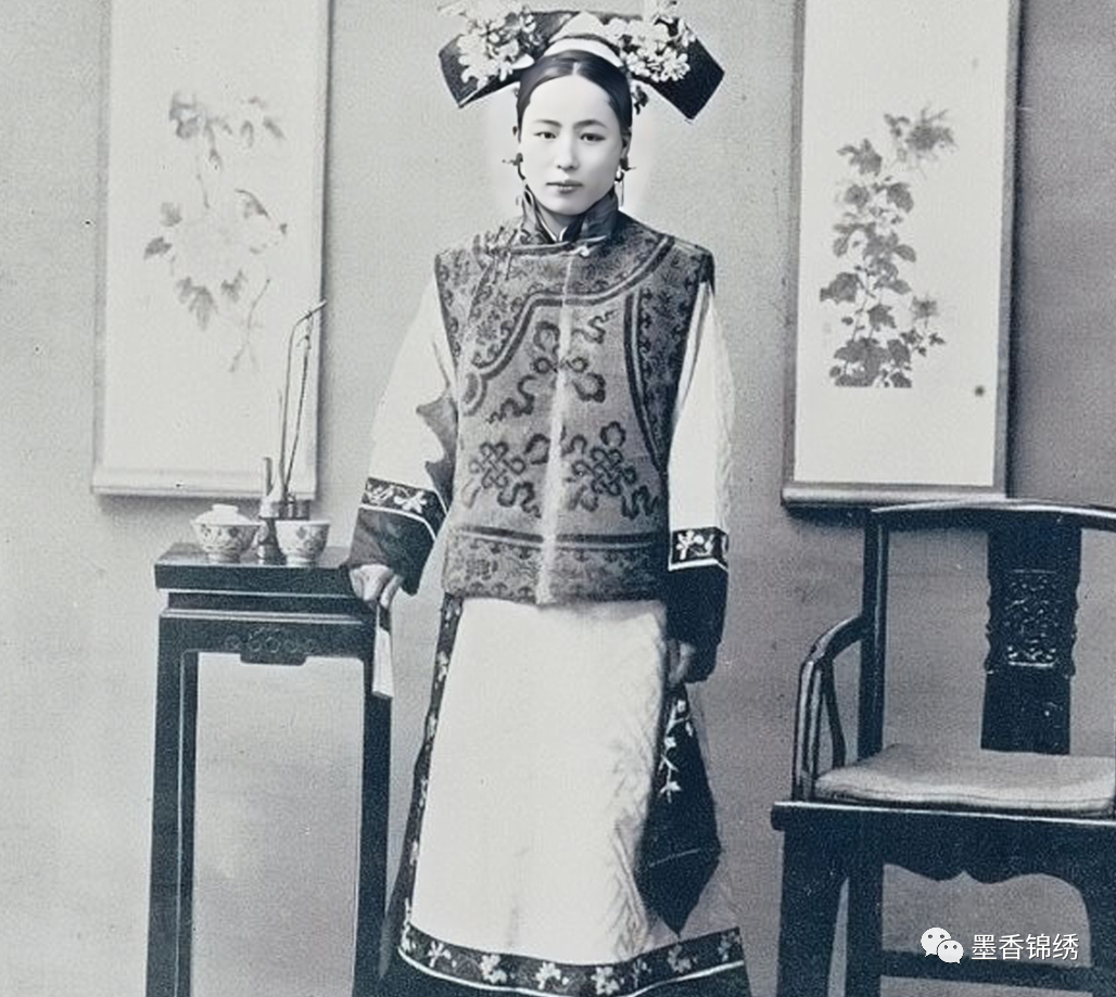 晚清年间的旗人王妃穿花盆鞋气质惊艳的肖像旧照。古时候的花盆底鞋通常形如马蹄,其造型为上细下宽,鞋底的高度为五到十五厘米,更有甚者可达到二十五厘米。再搭配上其典雅修长的旗装,更显得女子身材高挑婀娜多姿之美。