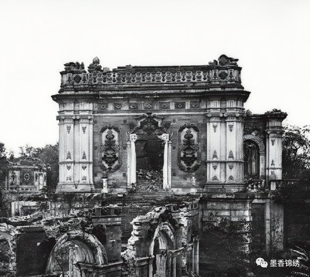 晚清名臣李鸿章的肖像老照片。其实早在晚清1860年之时,曾经金碧辉煌如天上琼楼的圆明园早就被入侵而来的英法联军大肆破坏,园内的雕栏画栋、奇珍异宝,被西方贼寇抢的抢、烧的烧,所剩下来不过是一堆带不走的断壁残垣、废墟一片。
