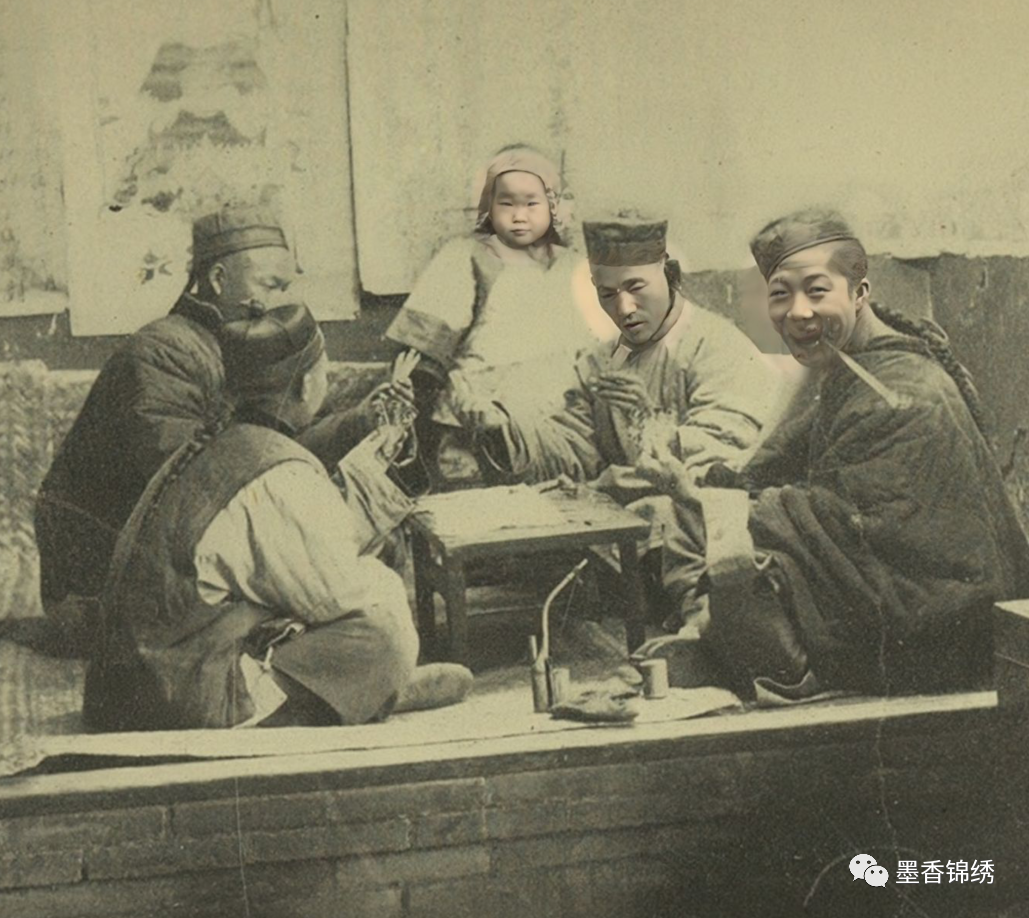 晚清时期四个男子们龇牙咧嘴地玩乐打牌时合影旧照,明恩溥在书中概述了各个不同阶层的晚清百姓性格与生活场景。然而有学者却指出其不足,直言道:明恩溥虽然为我们记录了晚清年代的历史画面,亦是为世人提供了窥探晚清的视角之路,但是作为一个美国人,他对中国人的记录与了解,并不全面与深沉。