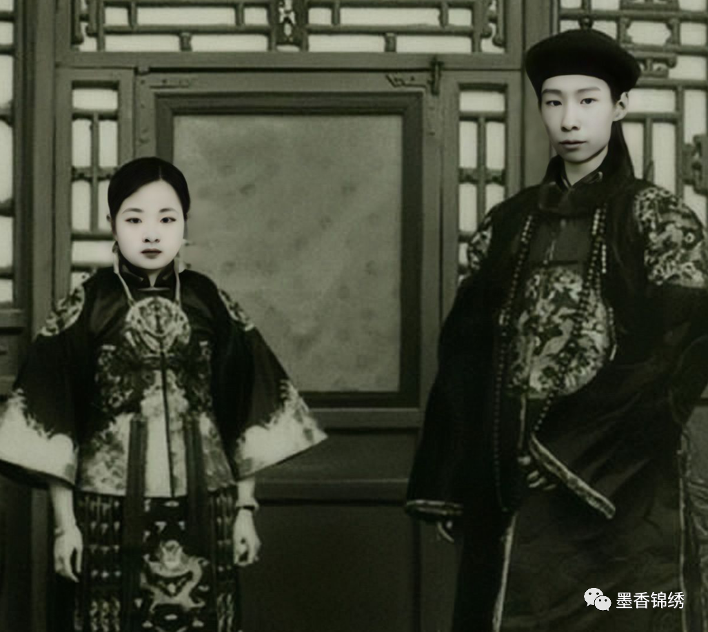 晚清年间的科尔沁亲王阿穆尔灵圭和妾室的留影老照片,历史上的亲王阿穆尔灵圭是一位非常开明的青年才俊。学贯中西的他深知清廷的衰败与积弱,于是他积极上书朝廷请奏大力兴办新式学堂,与蒙旗一带勘修铁路与周边地势建筑,力强百姓民生之计。