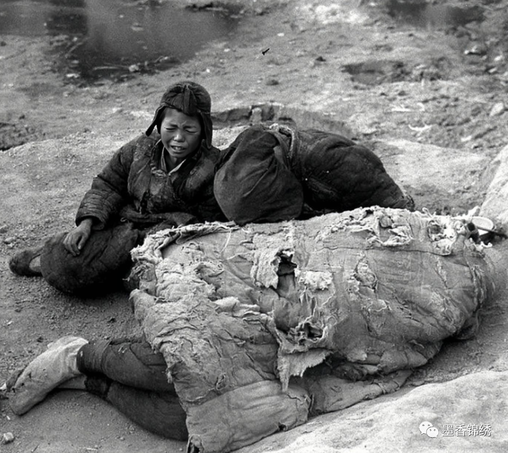 晚清年间一个失去家人的妇女倒地哀嚎痛哭的老照片,在那场混乱之中,很多底层的百姓们被炮火炸毁了房屋与家园,甚至还有很多百姓丧命于此。就连京城里的箭楼城门,亦是因义和团的纵火被烧毁得城破墙裂,四处皆是士兵们的尸体。