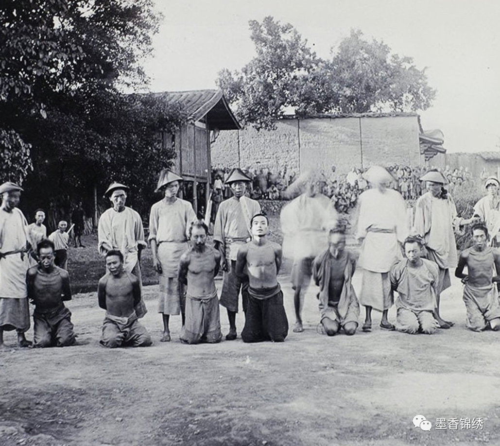 晚清1895年时,一群即将被官府处斩的囚犯们合影旧照,古时候的死刑乃是最为极端的刑罚之一,其中分为绞刑与斩首,而亦是还有监候与斩立决之分。而在这世人熟知的“五大刑”之外,且还有另外一些小刑罚,列如其中的“闰刑”,也就是对于犯事较轻的人,可对其惩戒戴枷锁示众游街。