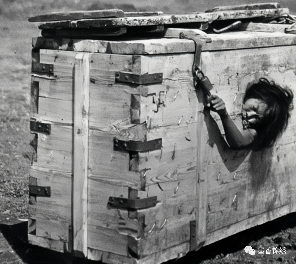 晚清时期的站笼之刑罕见留影,古时候的站笼又名为“立枷”之刑,通常是朝廷对于重型囚犯的极刑,而大部分的受刑者也会死于该站笼之中。站笼的要害在于其上端的枷,待囚犯被关进站笼之中,差役会抽掉囚犯脚下的木板,然后直到囚犯被站笼上端的枷锁紧紧卡主脖子,直至其窒息而亡。