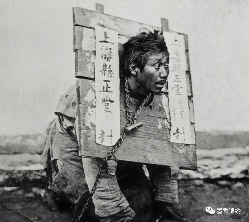 晚清时期一名男囚犯戴枷锁示众时留影老照片,其实古时候的戴枷锁极其不人道。枷锁之刑不但是对囚犯身体的极大折磨,亦是对其精神亦是有着非常严重的催促与羞辱。而这种枷锁通常面长为两尺五寸,宽则为两尺四寸,轻则为二十五斤,重则为四十五斤重。
