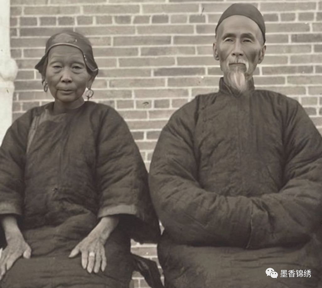 晚清年间寻常人家的夫妻合影旧照,古时候的女子社会地位很低,少时在家由父母做主,在其出嫁为人妻之后,凡事皆由丈夫决定处之。出嫁后的女眷不但要承担起照顾丈夫、公婆、子女的责任,而且家中的吃穿用度及大小事务皆由其打理劳作,可谓是堪比做牛做马般辛苦。